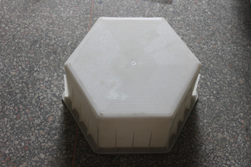 采用聚丙烯塑料原料經(jīng)注塑加工生產(chǎn)制造完成的實(shí)心六角護(hù)坡磚模具,外表白色透析,內(nèi)在堅(jiān)韌耐用,是生產(chǎn)高質(zhì)量實(shí)心六角護(hù)坡磚難得的塑料模具制品。實(shí)心六角護(hù)坡磚模具整體結(jié)構(gòu)簡單,呈一個塑料盒子樣子,上面開口用于水泥澆筑,所以有不少地方也稱為實(shí)心六角護(hù)坡磚模盒。