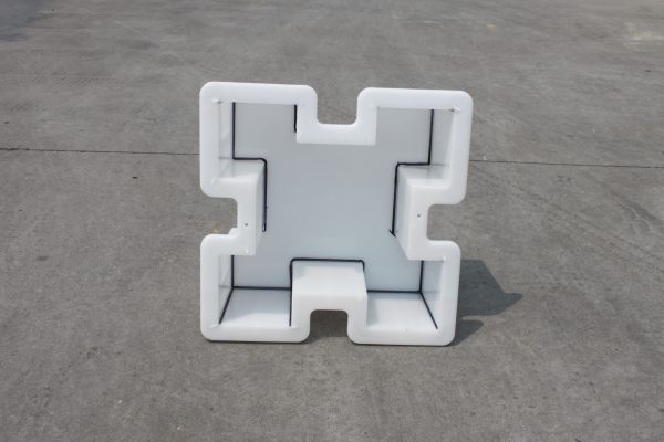 方格骨架樣式類似與一個中心固定鏈接點,生態(tài)護坡磚模具整體呈正方形結構,在每條模具邊均有相同尺寸開口,可以使用長條水泥磚組合拼裝,具體種植空間亦可以調(diào)整長條水泥護坡磚的尺寸來靈動變化。麗臣塑業(yè)建議對于一些泥土層較少的護坡面盡量采用尺寸較短的水泥護坡磚來布置,如果布置種植空間過大而沒有良好的泥土層養(yǎng)護,放大種植空間只會起到相反作用,降低護坡結構質(zhì)量。