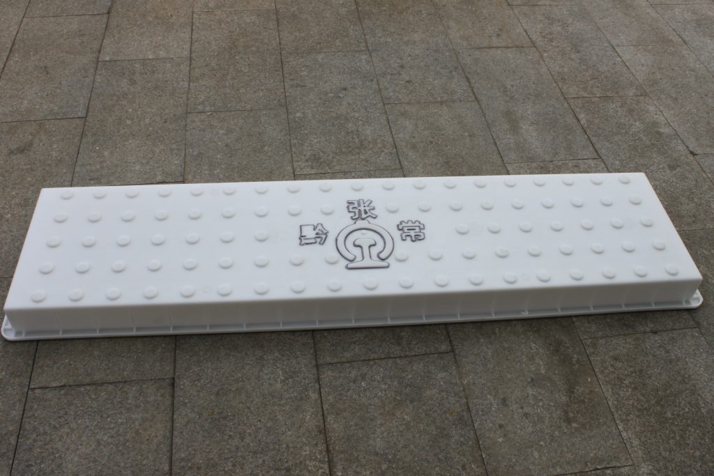 黔張常鐵路起始于重慶市黔江區(qū),途徑湖南張家界終點至常德市武陵區(qū),總長度為340公里,可見所需鐵路蓋板塑料模具的用量極大。此款黔張常鐵路蓋板塑料模具主要是以圓點防滑設計,在塑料模具中心位置印有黔張常字樣及鐵路專用圖標,長度158CM,因其長度突出,特別在鐵路蓋板塑料模具四周鑲嵌加強筋保證其結(jié)構(gòu)牢度,在實際施工中還是得注意。