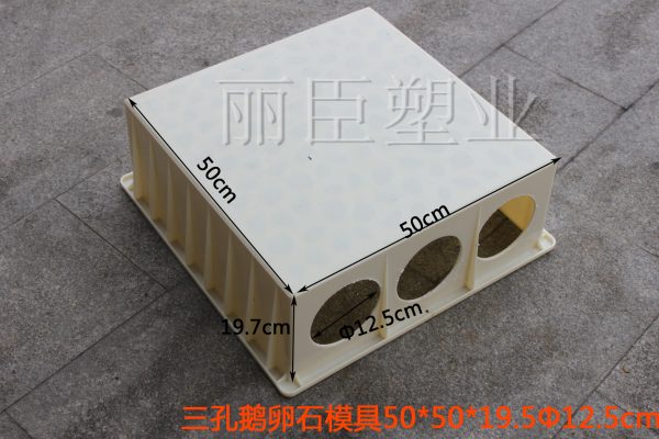 其中泄水管線纜槽模具整體外觀為正方形結構,長款分別是50厘米,高度為19.5厘米,六個貫通圓孔單一直徑為12.5厘米,具體細節(jié)指標及樣式請參考下圖。