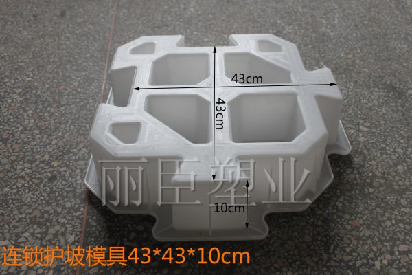 一款比較新穎的自鎖式護坡磚模具,廣泛運用于水利護坡設施項目,麗臣品牌護坡磚模具均采用聚丙烯塑料,質量更為穩(wěn)定。由于其可靠的自鎖形式,是生態(tài)護坡穩(wěn)定運行的一個重要基本要素,大量預留可植草間隙,更是提升了這個生態(tài)護坡模具所制自鎖式護坡磚的可操作性。