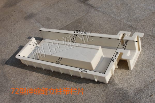 72型高鐵護(hù)欄配套專用,名稱為伸縮縫立柱帶欄片模具,主要采用ABS工程塑料經(jīng)注塑加工而來,從模具整體樣式上可以明顯看到立柱與欄片部分。