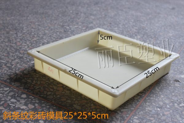 在這款步道磚塑料模盒在外觀設(shè)計(jì)上,通過改變形狀,花樣等,讓塑料彩磚模具制品在后期澆筑過程中能更好的使用。條紋的設(shè)計(jì)上改變以往橫向條紋的使用,以斜條紋樣式為彩磚模盒內(nèi)部的主要形狀,斜條紋的設(shè)計(jì)可以增大彩磚與行人與地面之間的接觸面積,即便是在下雨天出行時也不會打滑等現(xiàn)象,且還能美觀使用場所的環(huán)境,常用于城市、公園、社區(qū)等步行道上。