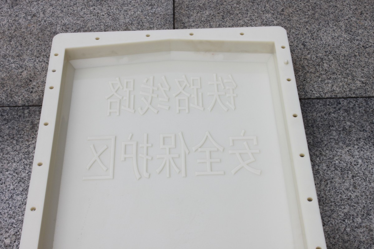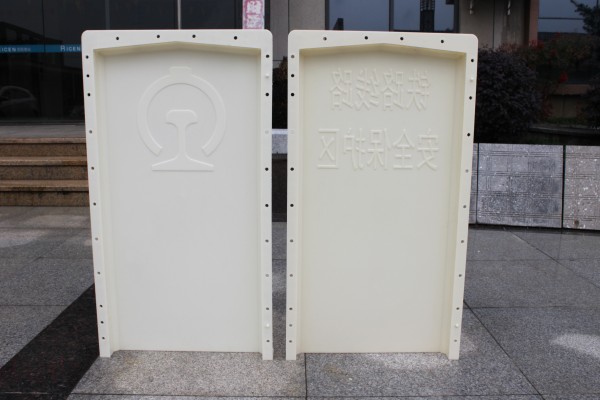 水泥警示牌模具使用ABS材質(zhì)注塑工藝制造,主要分為2個部分。正面為標有“鐵路線路安全保護區(qū)”字樣,反面為一個中國鐵路圖案,配件方面主要為2個主體部分組裝時所需要的螺絲螺帽。主要應(yīng)用為水泥混凝土警示牌預(yù)制,主要功能是在中國鐵路建設(shè)中,提醒人們?yōu)榇颂帪殍F路線路安全保護區(qū),在施工等一系列活動中需注意國家鐵路的安全。