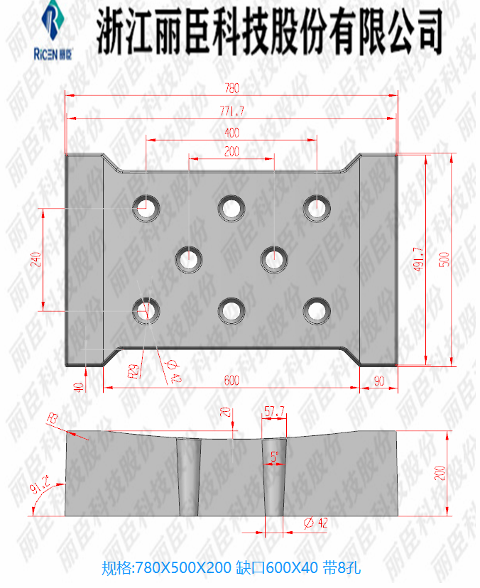 缺口60凹面八圓孔蓋板78x50x20-18