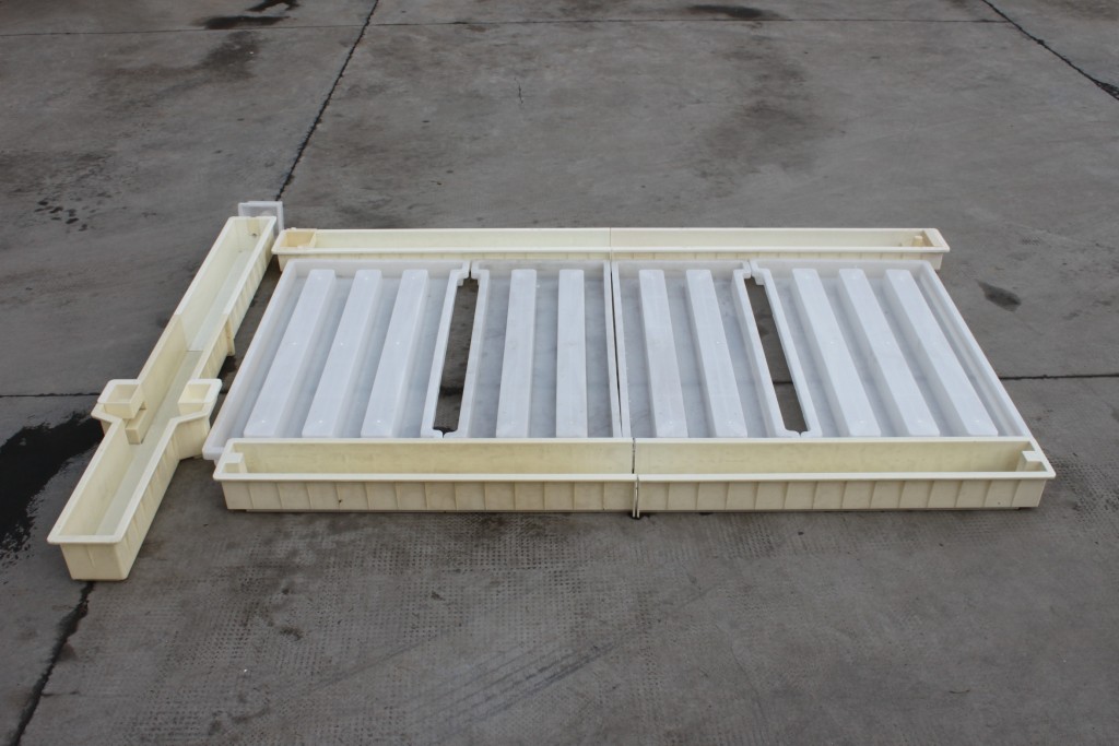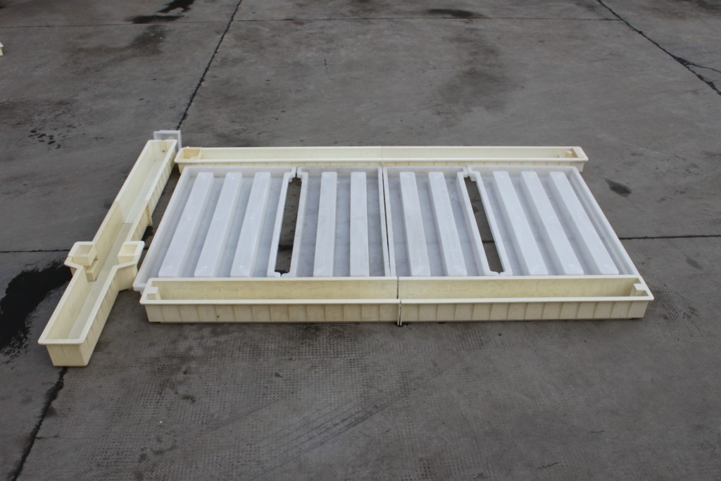 護欄欄片模具在高速路基護欄模具里面設(shè)置了4片式設(shè)計,水泥欄片成型為4+3+3+4的組合模具,尺寸分別為149.5*81*9cm2片,149.5*59*9cm2片。在使用整個路基護欄模具澆筑水泥制品過程中,水泥欄片模具為使用率相對較高的模具,采用PP聚丙烯原料更好的韌性可以更好的提高模具的使用次數(shù)。